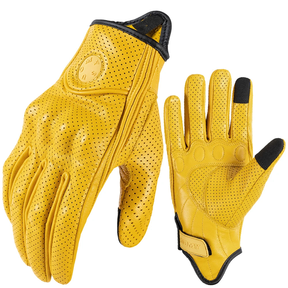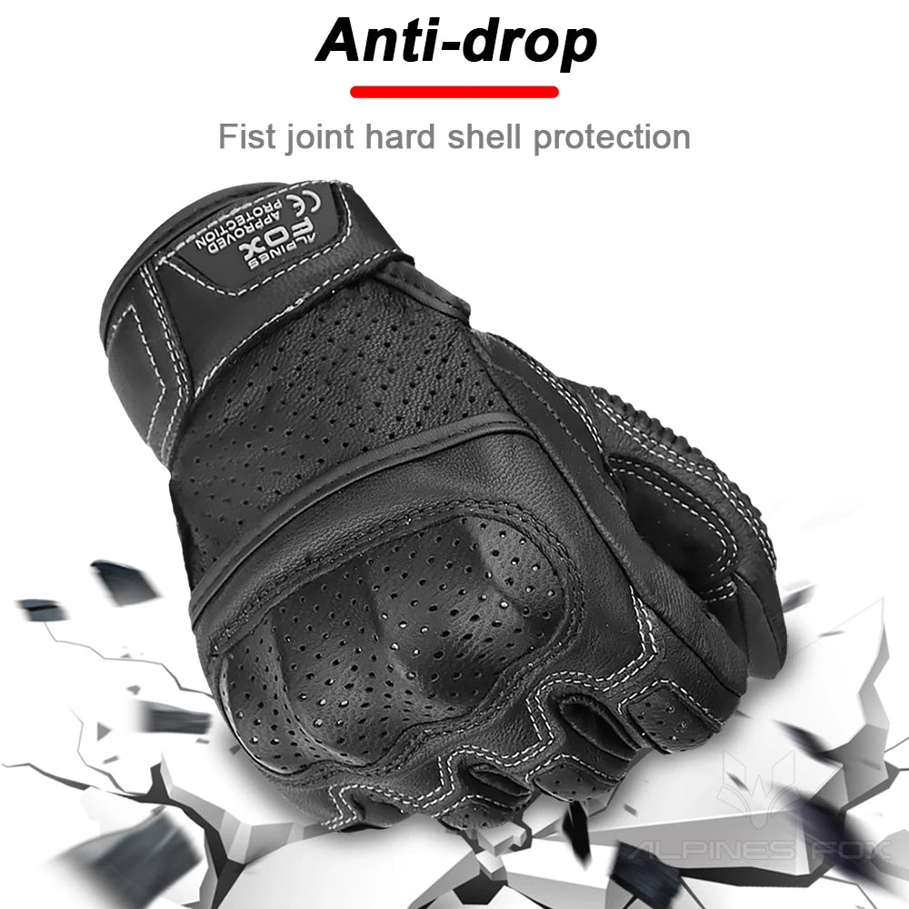 ALPINES FOX Vintage Leather Motorcycle Gloves – Touchscreen, Anti-Slip & Breathable